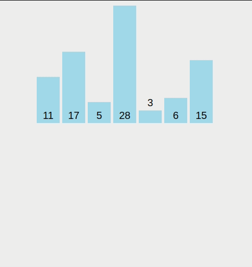 # 선택한 원소가 앞의 원소들 보다 작다면 한칸씩 앞으로 전진