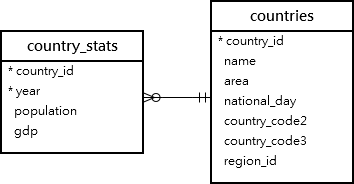 다음은 countries Table과 country_stats Table을 left join 하여 나라와 그 나라의 GDP를 찾는 예제입니다.