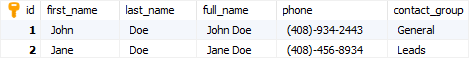 values('Jane','Doe','(408)-456-8934','Leads');